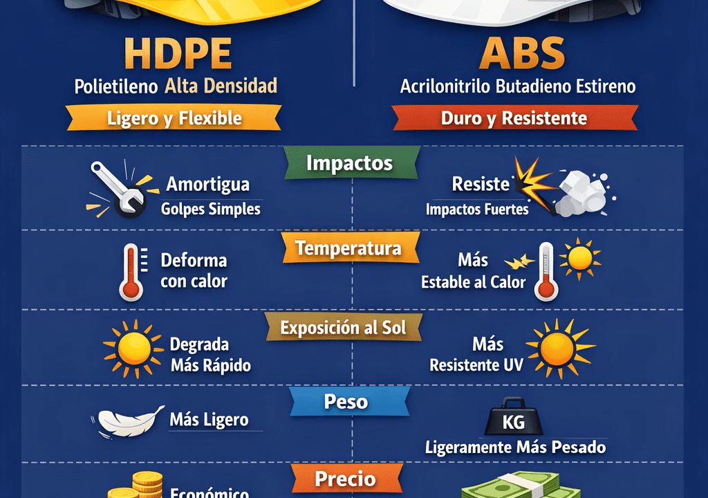 En este artículo te explicamos las principales diferencias entre cascos HDPE y ABS para que puedas tomar la mejor decisión según tu tipo de trabajo.