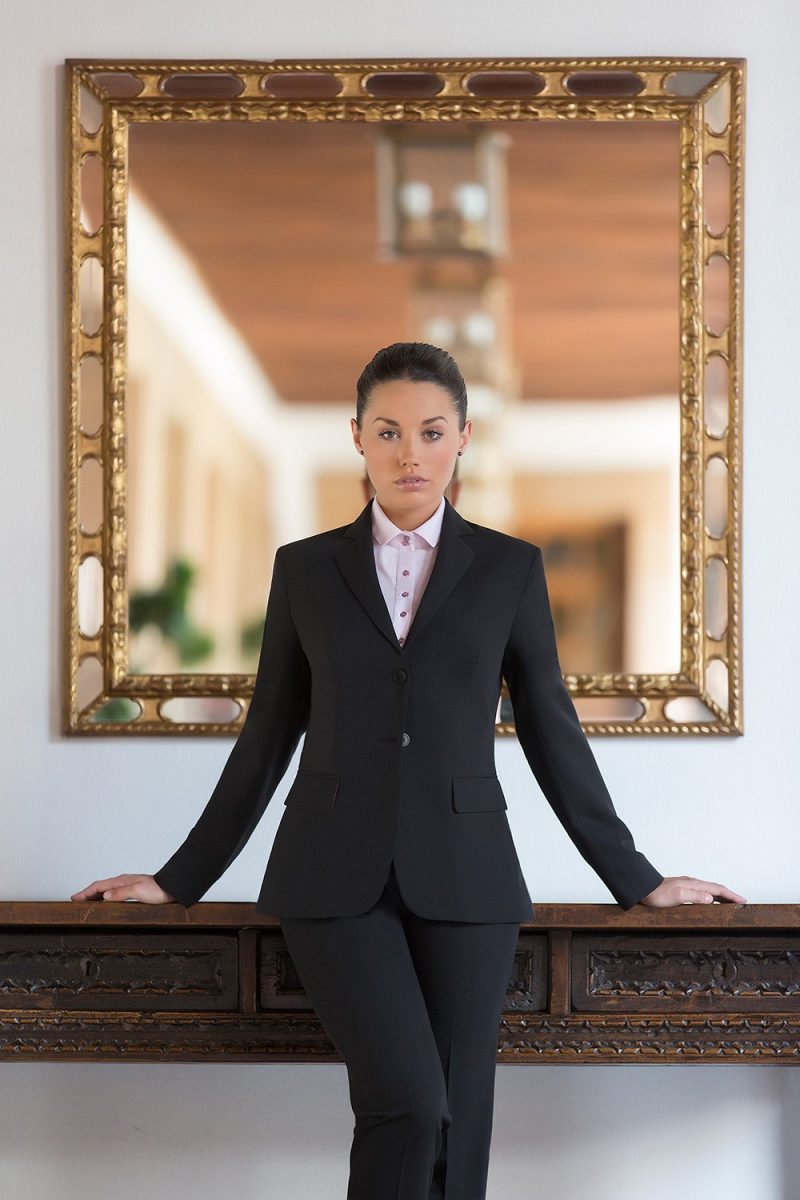 Americana de estilo moderno para mujer, un modelo especialmente pensado para trabajar ya sea en hostelería, en departamentos comerciales. Una apuesta de tejido que llamamos viscosa mixta, una combinación de materiales que proporcionan un alto nivel de comodidad, un acabado fino y ligero, un tacto suave y una excelente resistencia a las arrugas. Con una línea renovada, hombro más pegado y contorno más ajustado, lo que la convierte en una prenda perfecta para los trabajos que requieren una presencia formal y comodidad