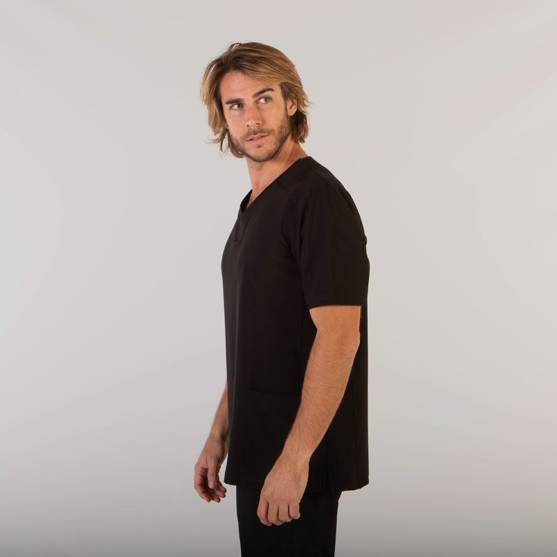 Descubre la versatilidad y comodidad de la Casaca Hombre Tadeo, una prenda diseñada para satisfacer las demandas de profesionales de la salud y otros sectores laborales. Esta casaca de manga corta presenta un moderno cuello pico y tres bolsillos delanteros, incluyendo dos en el lateral derecho, ofreciendo funcionalidad y estilo. La prenda, holgada y cómoda, cuenta con costadillos en delantero y trasero, así como aberturas laterales para mayor libertad de movimiento.
