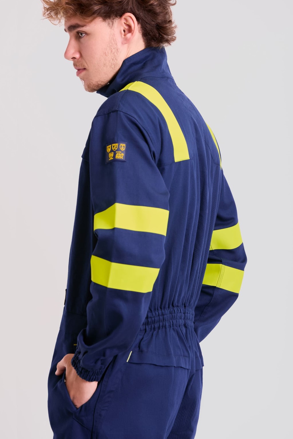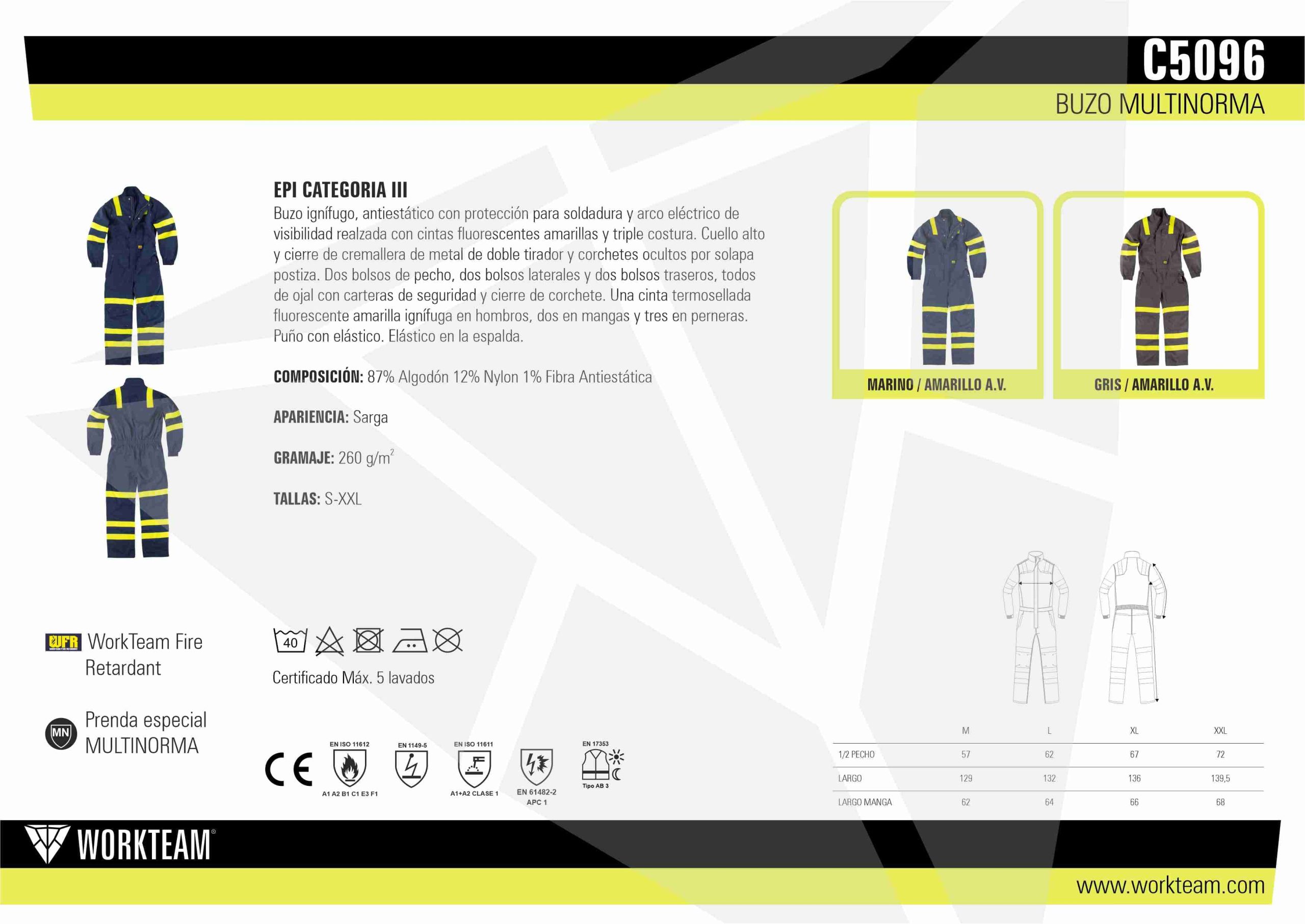 Buzo ignífugo y antiestático, con cintas reflectantes termoselladas.