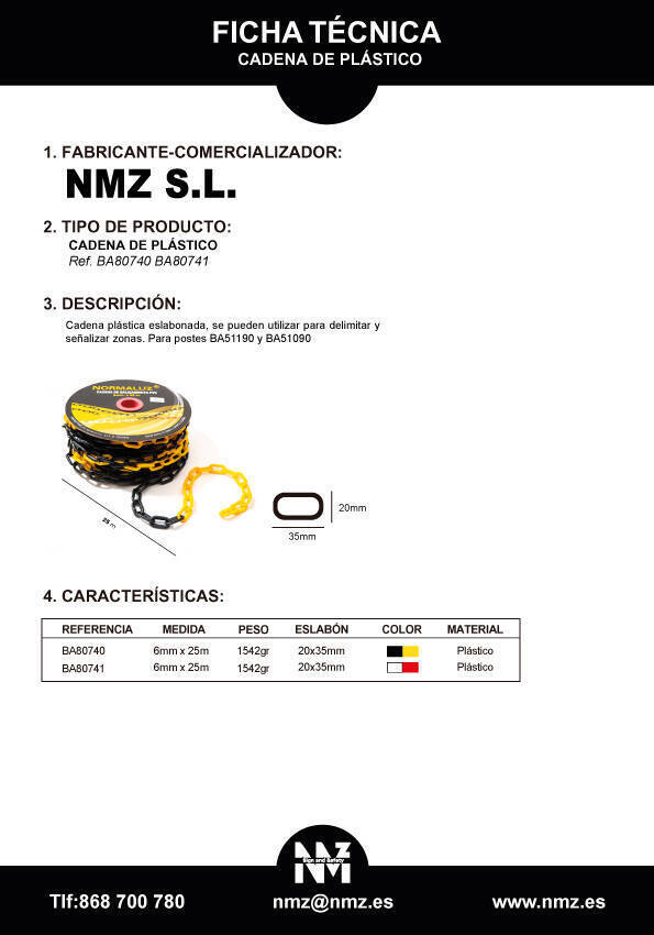 CIERRE PARA CADENAS PARA POSTES DE PLÁSTICO 90 CMS. REF. BA501090, BA501190. Catálogo NMZ