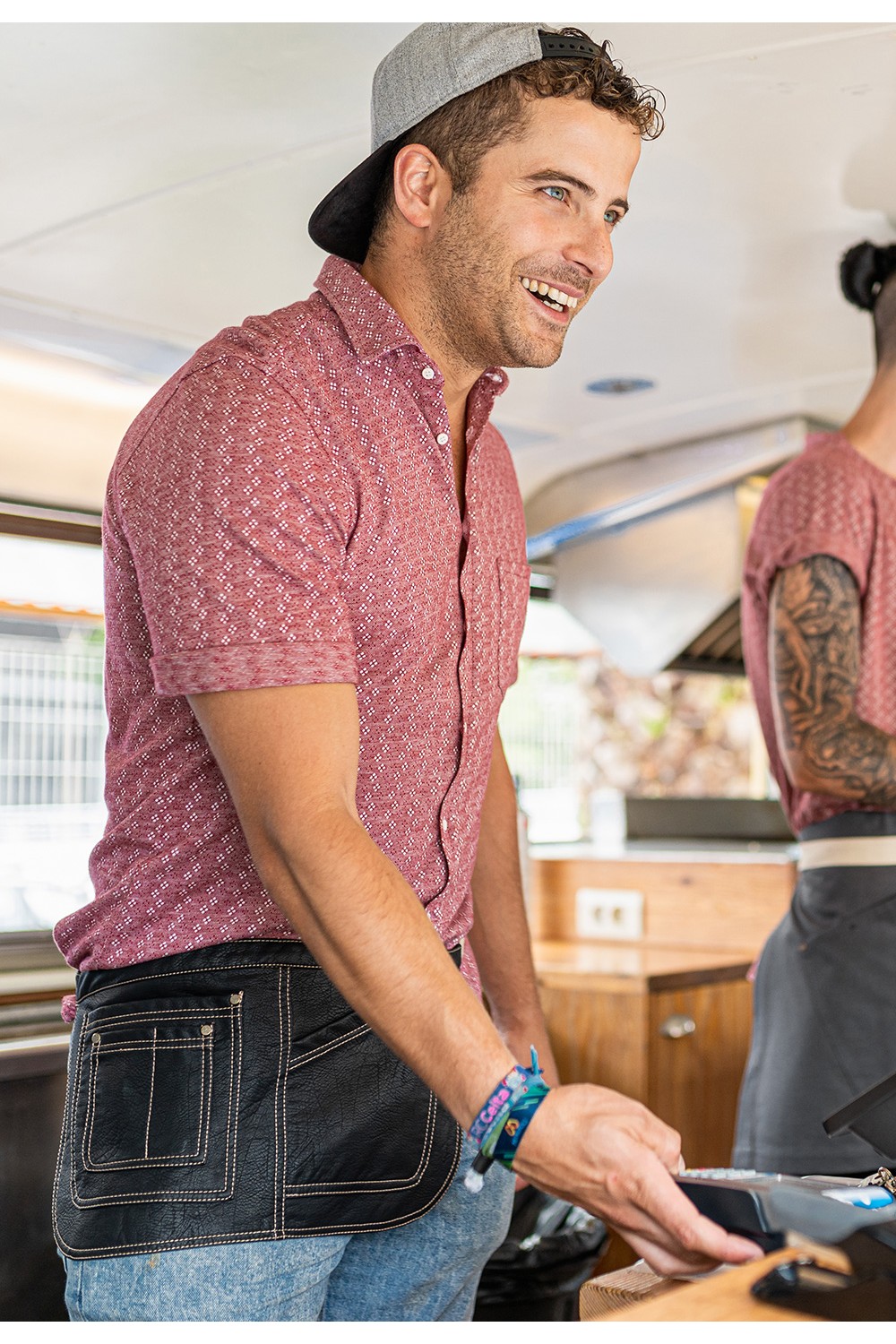 Comprometidos con una moda sostenible y más ética te presentamos esta camisa de algodón orgánico. Esta fibra natural ecológica proporciona una textura suave y sedosa a la piel, además es muy ligera. Con esta prenda tan urbana y actual podrás uniformar a hostelería, personal de sala y de cocina. Nos gusta pensar que los chefs y camareros de food trucks podrían sorprender a sus clientes con esta camisa.