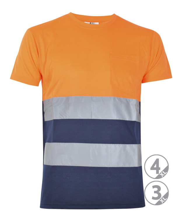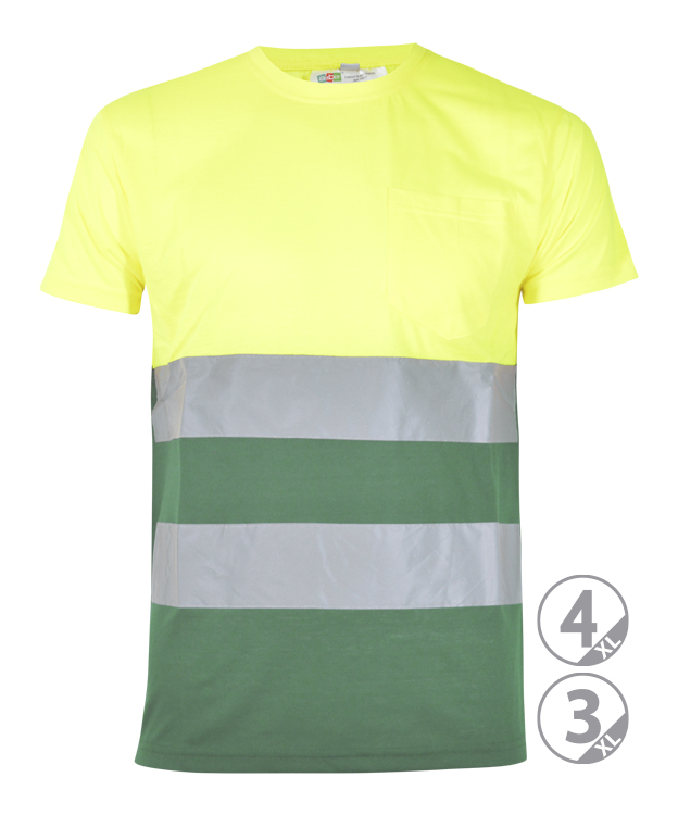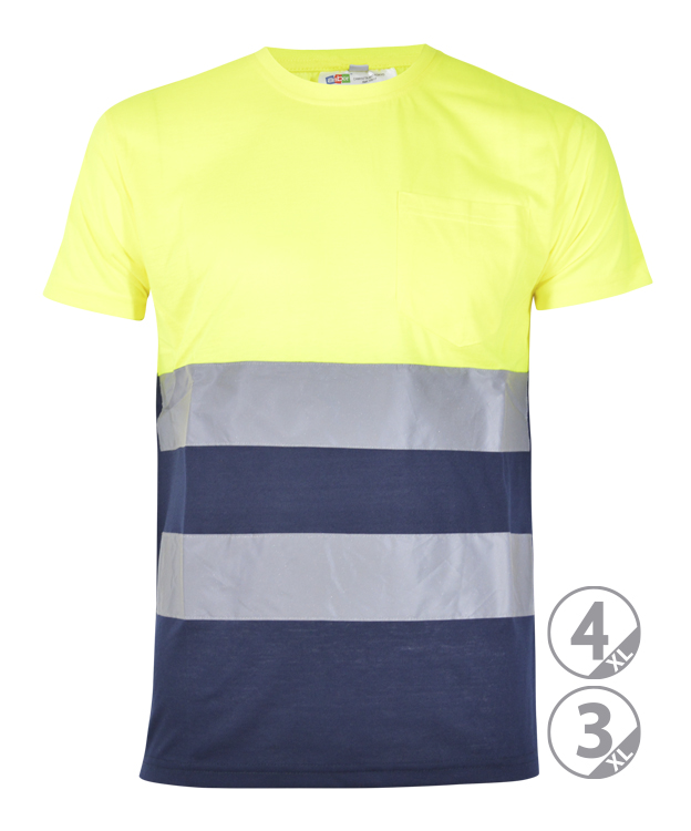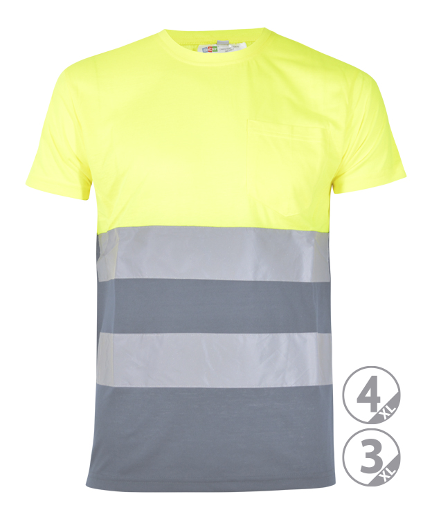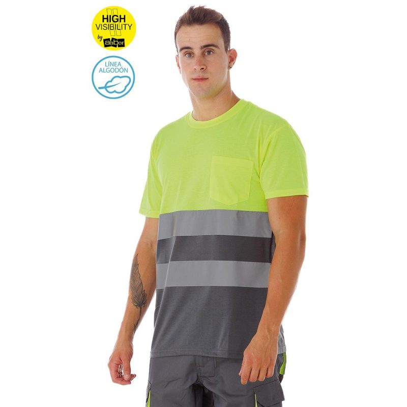 Camiseta alta visibilidad bicolor de manga corta, 100% poliéster tacto de algodón,