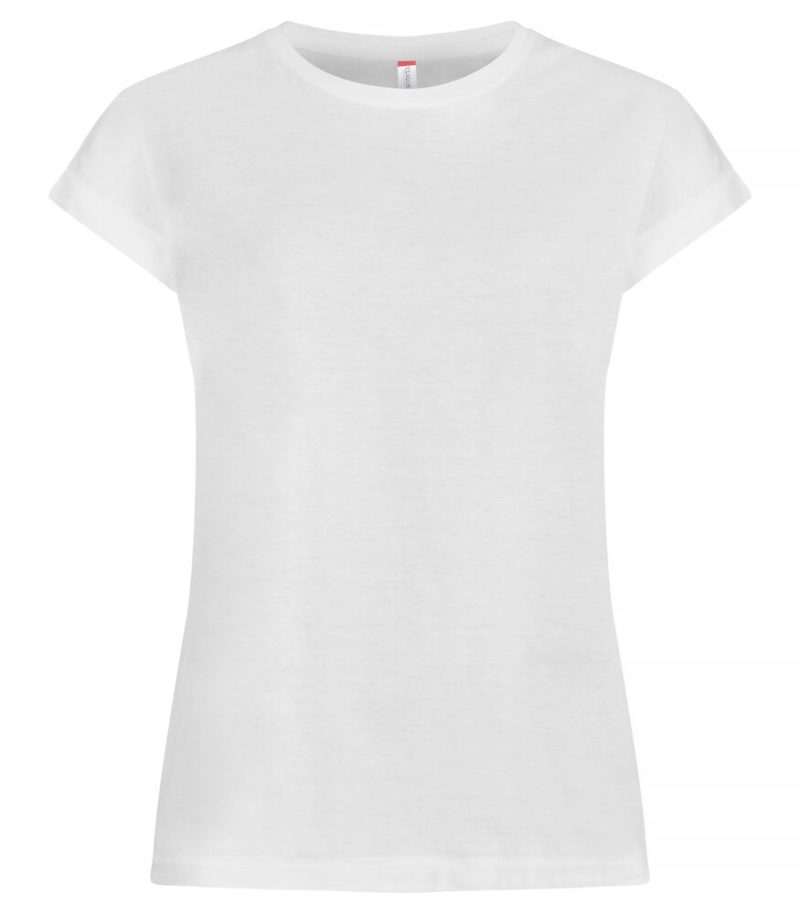 Camiseta de mujer de corte holgado. Tapeta reforzada. De fácil re etiquetado.