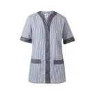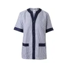 Cierre central con botones Cuello en pico Vistas en color contraste Pinzas en pecho y espalda Semientallada