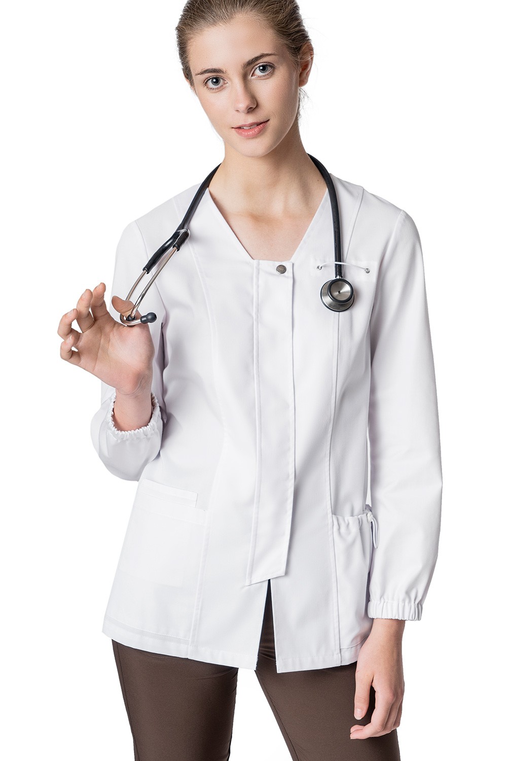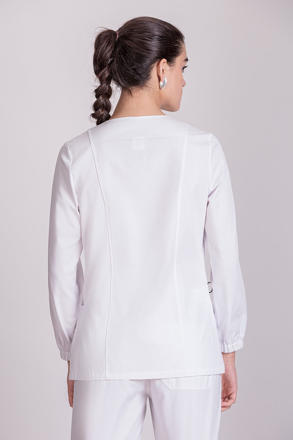 La línea sanitaria ECOCLASS para mujer ofrece comodidad y estilo sin comprometer el medio ambiente. Una casaca sostenible, reciclada y ecológica con la que uniformar a farmacéuticos o médicos de clínica. Al reciclar las fibras del poliéster estamos gastando un 20% menos de agua que en la fabricación de poliéster común. El algodón proviene de plantaciones BCI (Better Cotton iniciativa) que cuidan el entorno social y económico de la plantación y de las personas que lo fabrican.