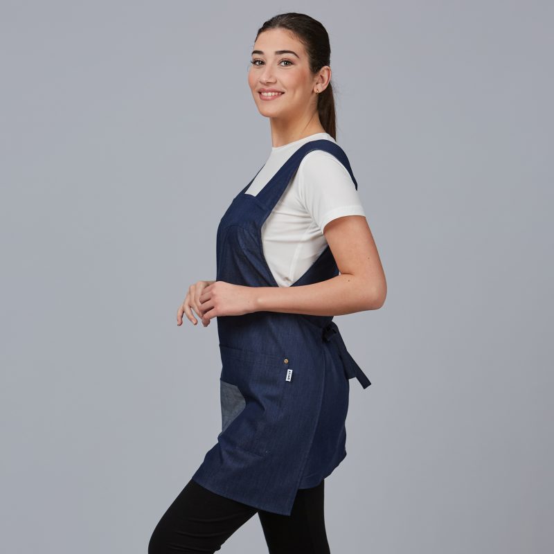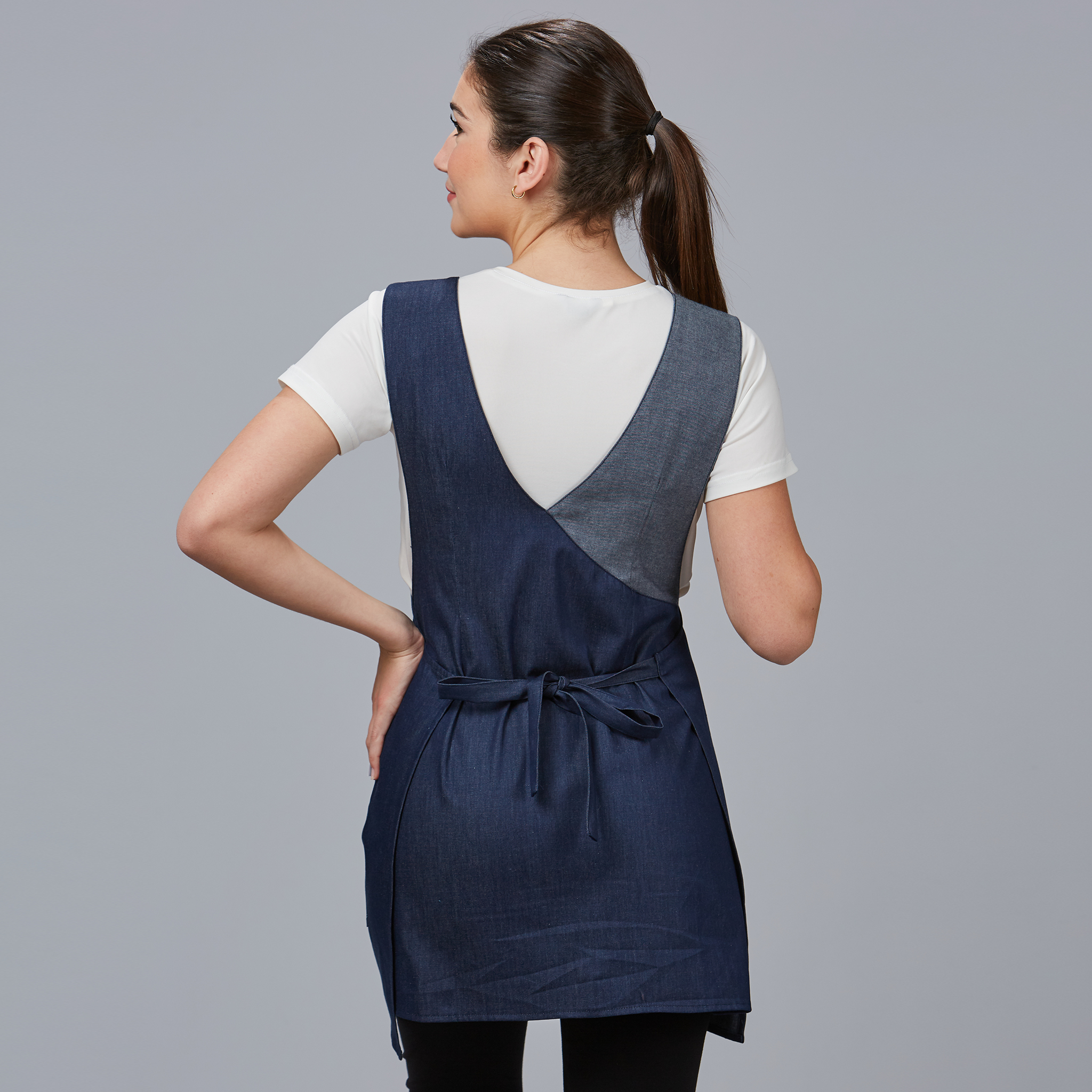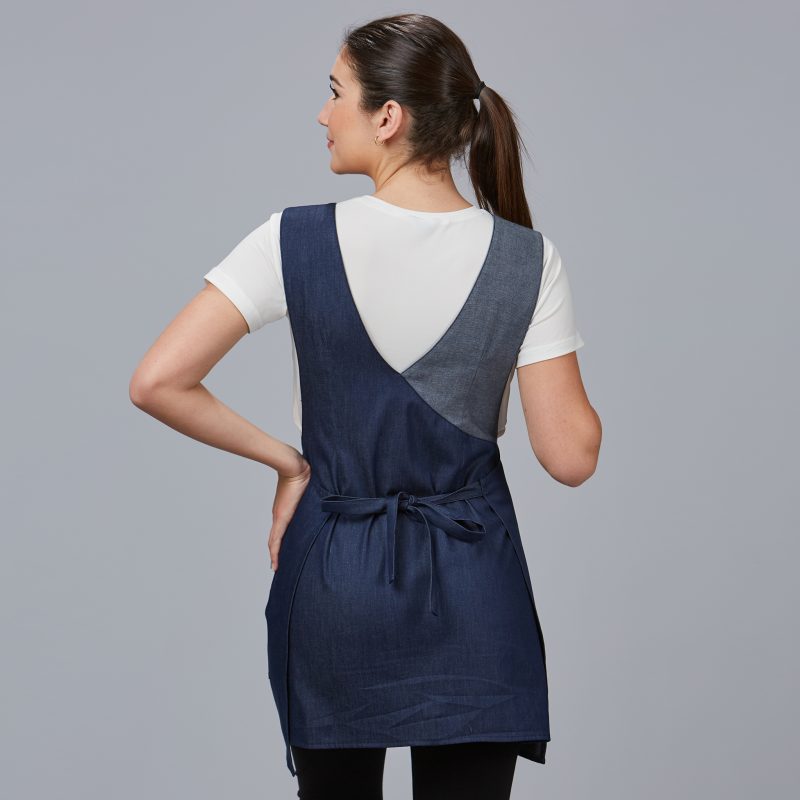Gracias a las pinzas en sisa y espalda, junto con las cintas ajustables en los laterales, puedes adaptar la casulla AMAPOLA a tu cuerpo de manera precisa, garantizando un ajuste cómodo y seguro durante toda tu jornada laboral.