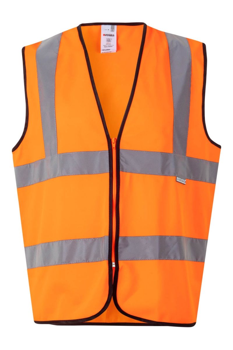 Cierre central con cremallera, Cintas reflectantes en torso y hombros.