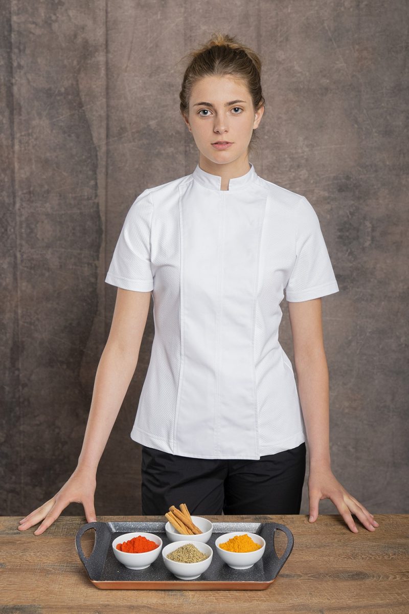 La línea para cocina ECOCLASS ofrece comodidad y estilo sin comprometer el medio ambiente. Una prenda sostenible, reciclada y ecológica con la que uniformar a chefs de todo el mundo. Al reciclar las fibras del poliéster estamos gastando un 20% menos de agua que en la fabricación de poliéster común. El algodón proviene de plantaciones BCI (Better Cotton Iniciativa) que cuidan el entorno social y económico de la plantación y de las personas que lo fabrican. Además, es una chaqueta NORVIL 4-step con ajustes elásticos incorporados que te permitirán el full movement que necesitas para trabajar