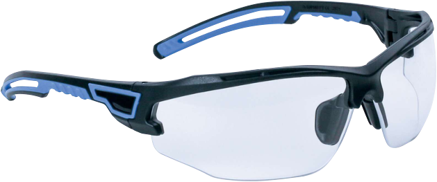 Gafas de protección transparentes con puente nasal ajustable y patillas bimaterial para mayor comodidad