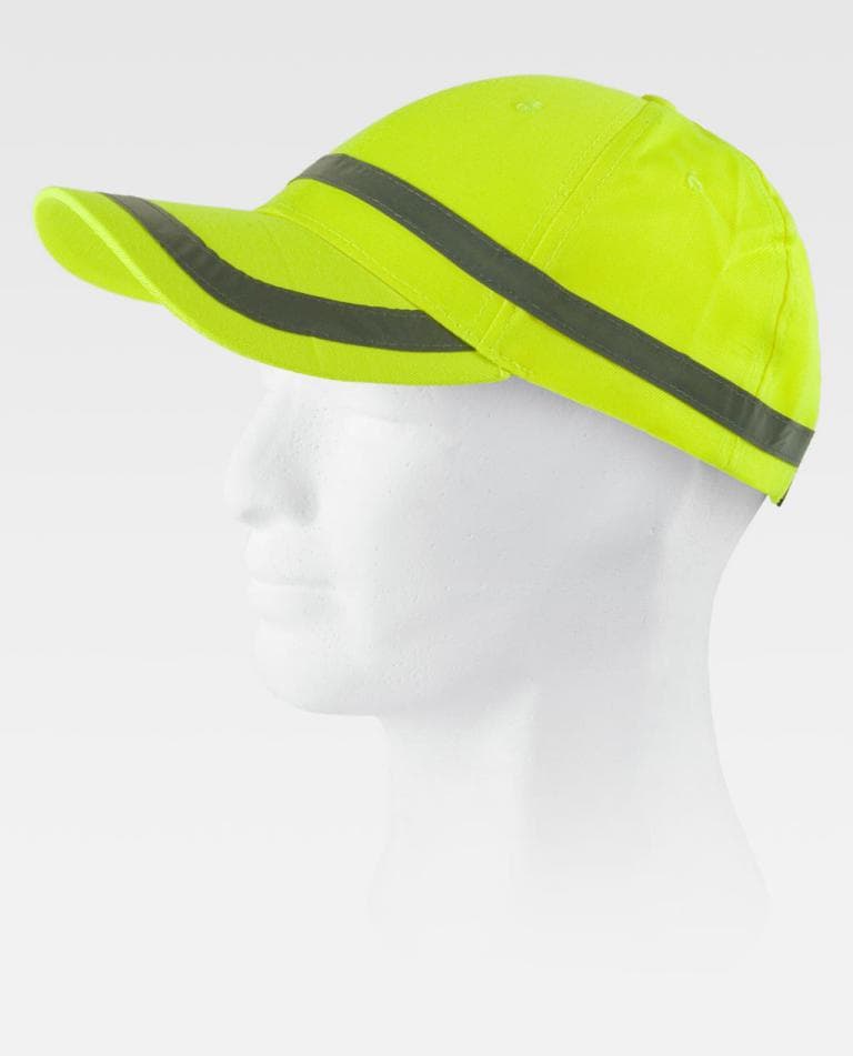 Gorra ajustable en alta visibilidad, diseño franja reflectante horizontal. Ref.