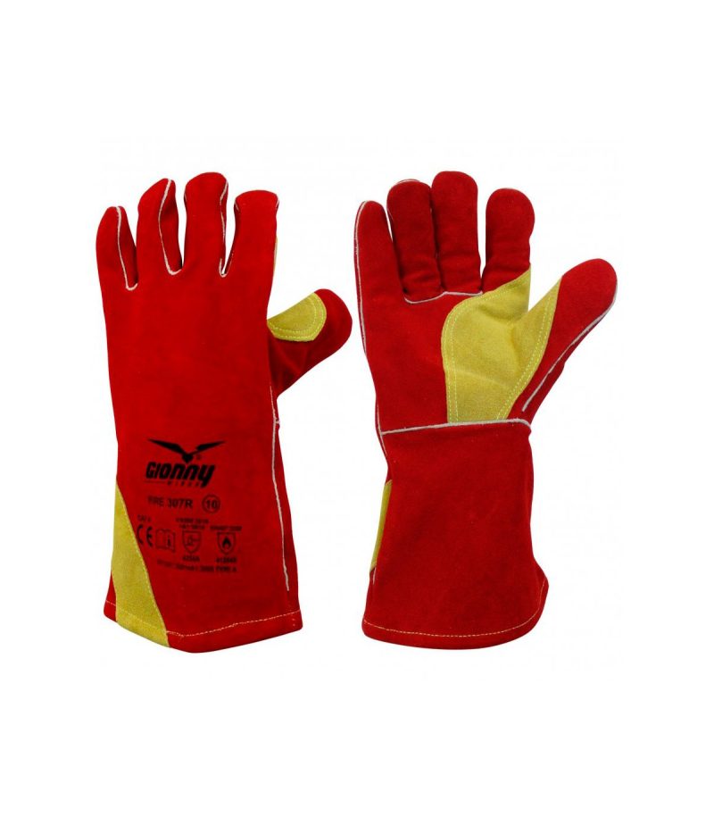 Guantes de soldadura completamente de serraje, de 34 cm de longitud. Palma reforzada con serraje. Forro interior de: tejido de punto para el dorso, tela perchada para la palma y tela drill para el manguito. Costuras con hilo de para-amida. – Características: suaves, recios, resistentes – Puntos fuertes: confort, agarre, protección, precisión – Campos de uso: adecuados para manipulación de objetos afilados, rugosos, abrasivos y calientes, para operaciones de soldadura, esmerilado y desbarbado, para limpieza de equipos, carpintería y carpintería metálica. Unidad mínima de venta: 1 docena (12 pares)