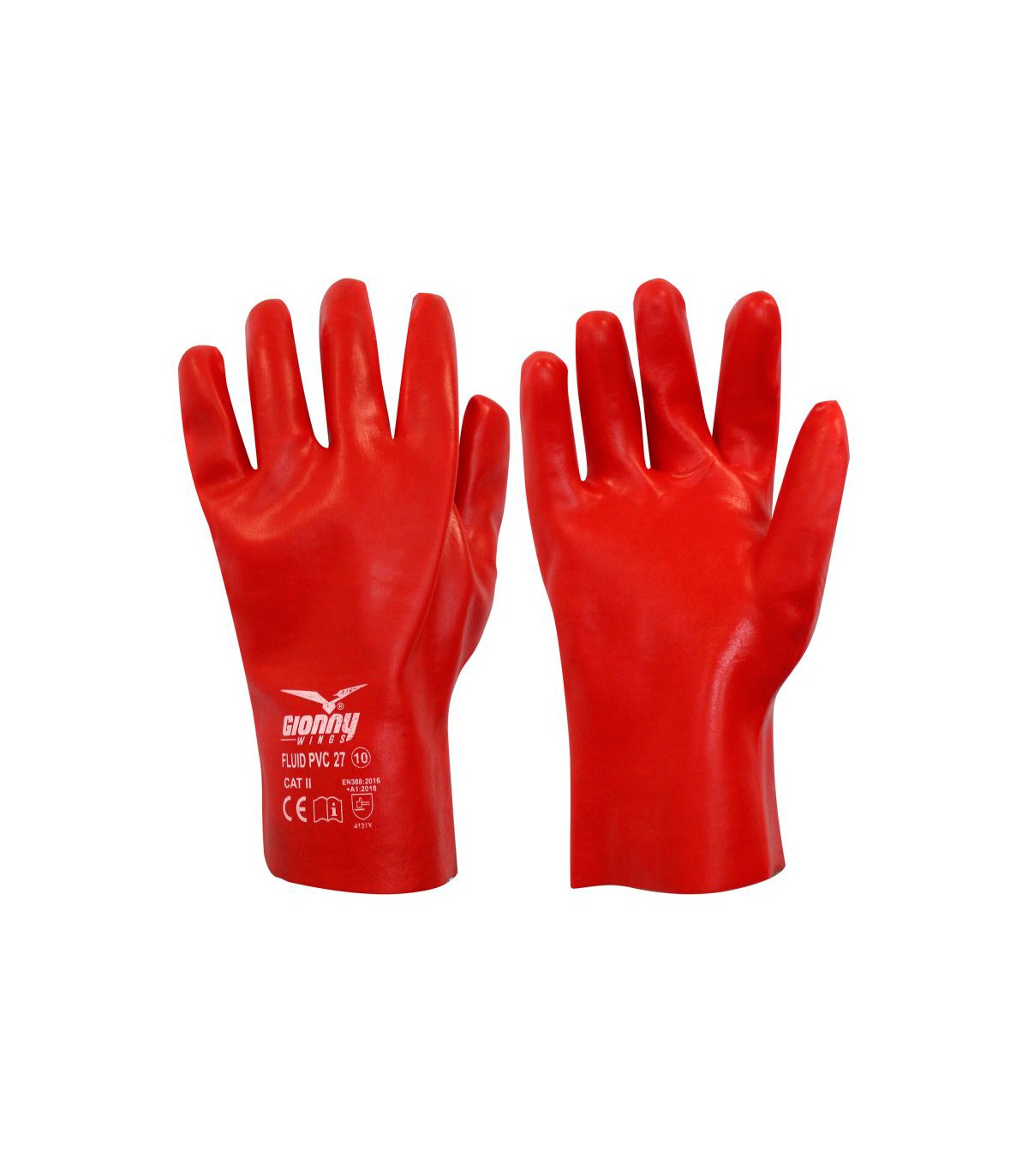 Guantes de PVC de 27 cm, algodón entretejido con revestimiento – Características: muy resistentes, recios – Puntos fuertes: ajuste, agarre, protección, resistentes a líquidos, prácticos – Campos de uso: manipulación en presencia de aceite, grasa o líquidos. Unidad mínima de venta: 1 docena (12 pares).