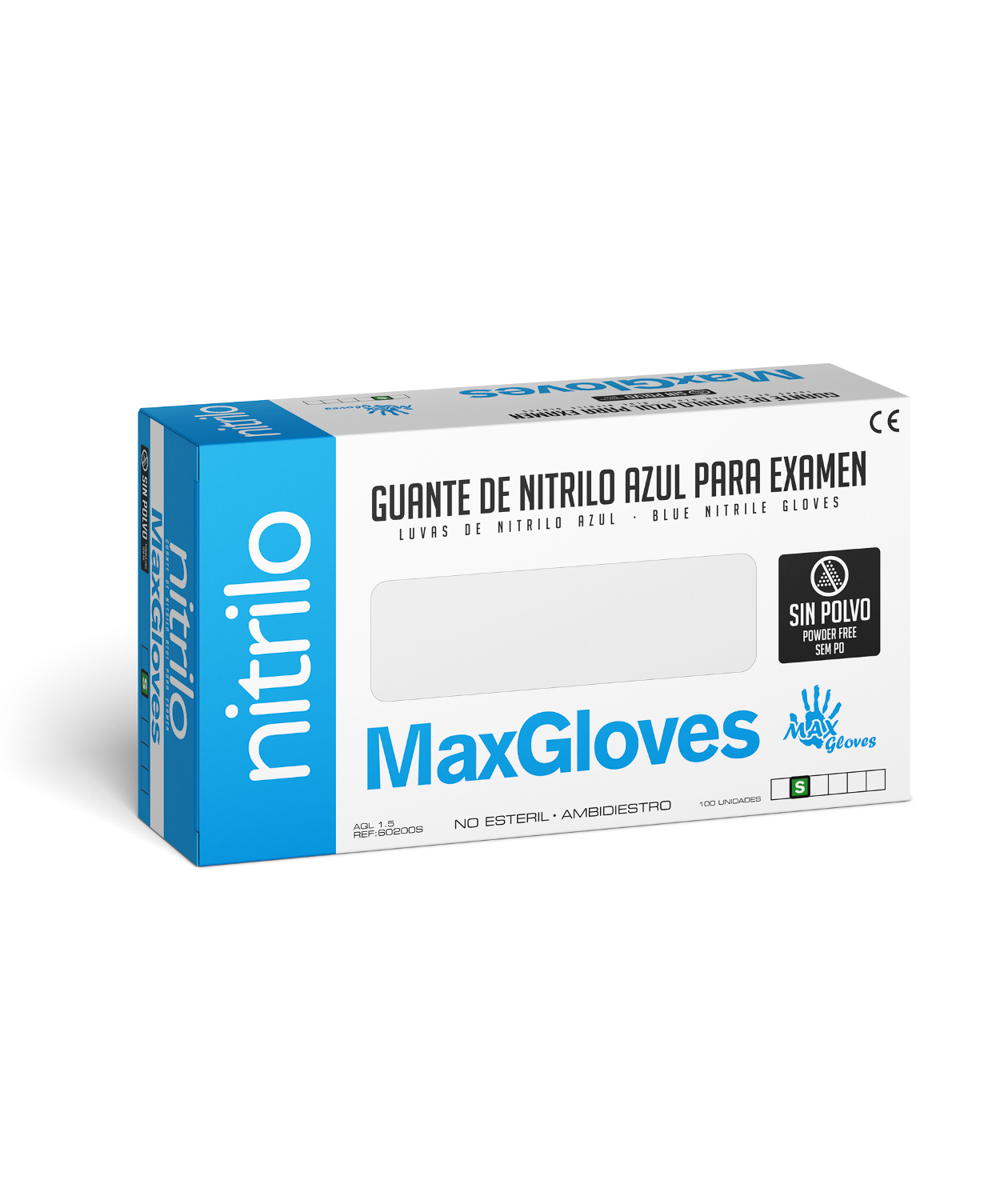 Guante de un solo uso, no estéril, sin empolvar. Con superficie lisa interior y micro texturizada en la parte exterior de los dedos. Ambidiestro, con puño con reborde para asegurar colocación y 100% libre de látex. Guante de protección EPI Categoria III, y producto sanitario Clase I. Color azul cobalto