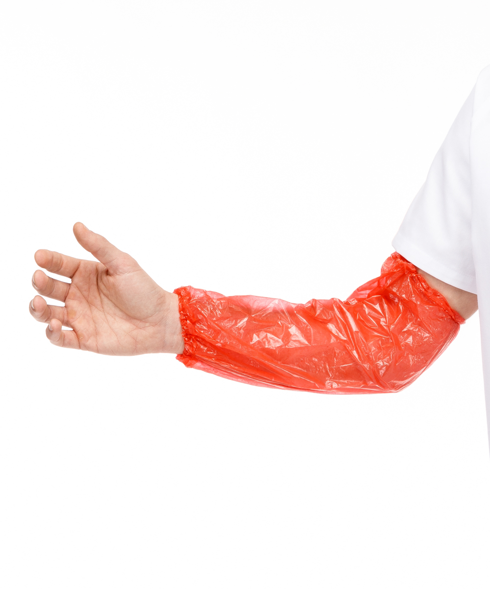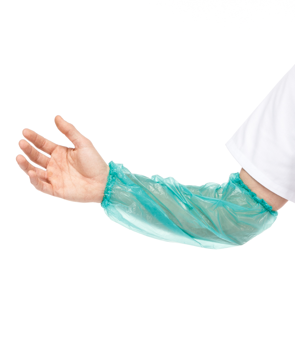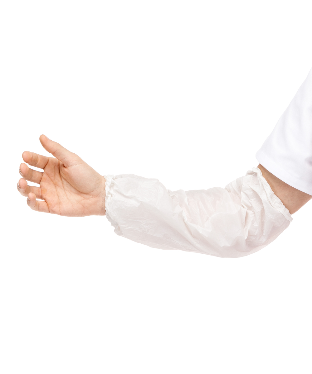 Manguito fabricado en Polietileno(LDPE) de 0.04mm. Con elásticos en ambos laterales y sellado manualmente.