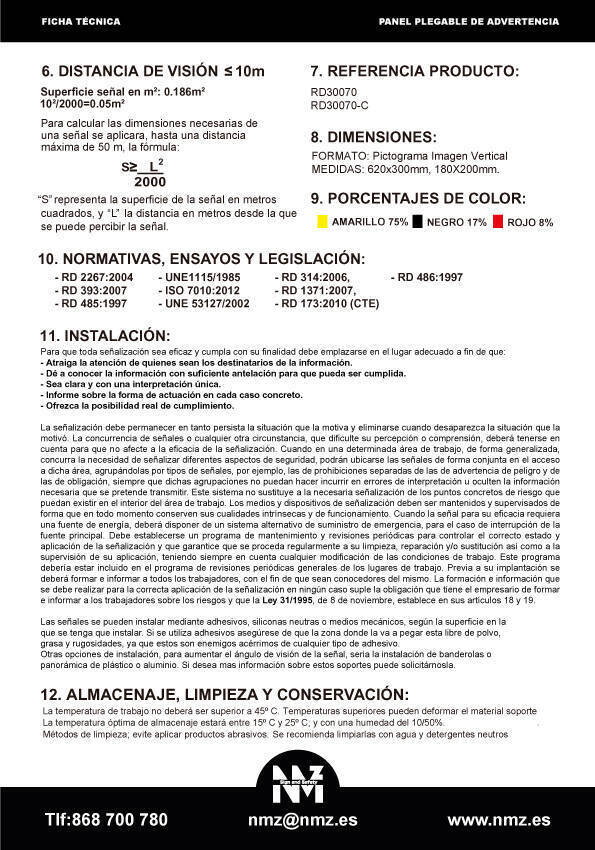 PANEL AMARILLO PRECAUCIÓN SUELO MOJADO 620MM ALTURA REF. RD30070