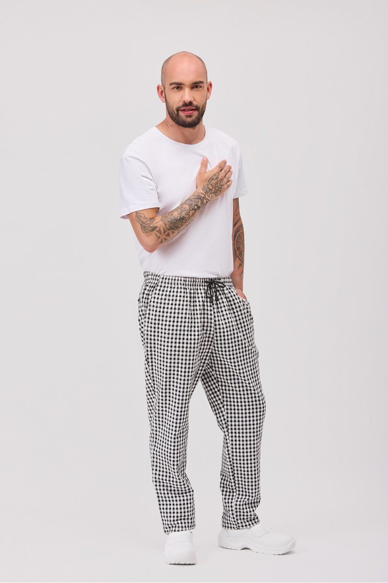 El equilibrio perfecto entre resistencia y una buena sensación térmica. La estructura seersucker que tiene el tejido le otorga un peculiar efecto arrugado lo que permitirá que te veas bien durante toda la jornada de trabajo. Diseño de pantalón para cocineros de cuadros de vichy con un patrón de calidad que se adapta en proporción a todas las cinturas.