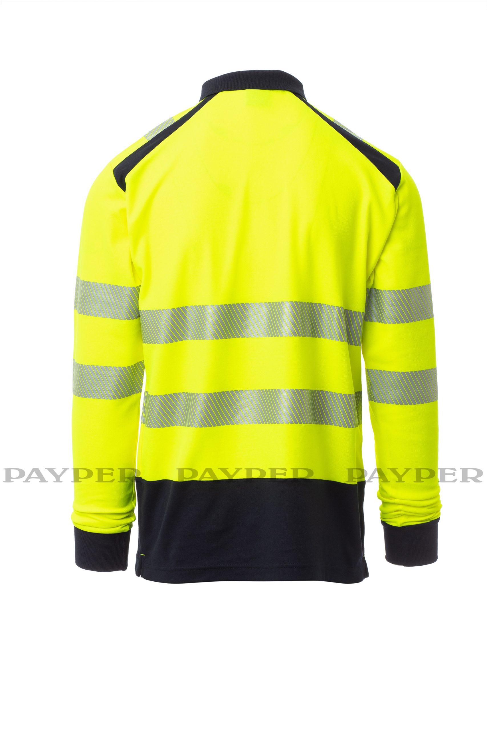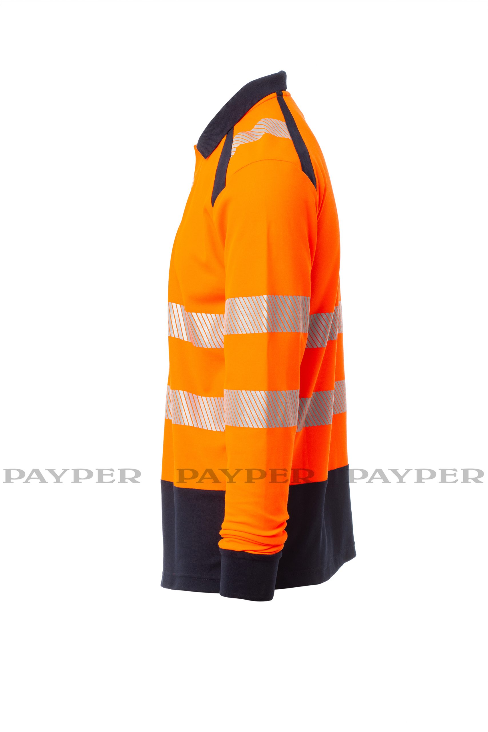 Polo bicolor de alta visibilidad, de manga larga. Cuello con 3 botones, con canalé y costuras cubiertas. Aberturas laterales. Bandas retrorreflectantes segmentadas y termoselladas para facilitar el movimiento. El tejido, confeccionado con algodón en el interior y poliéster en el exterior, garantiza una gran transpirabilidad y comodidad, así como una mayor durabilidad.