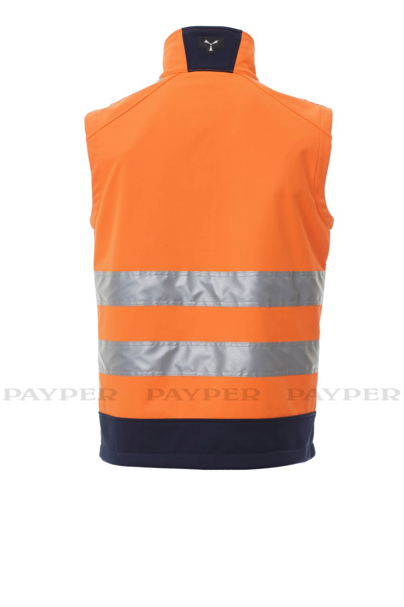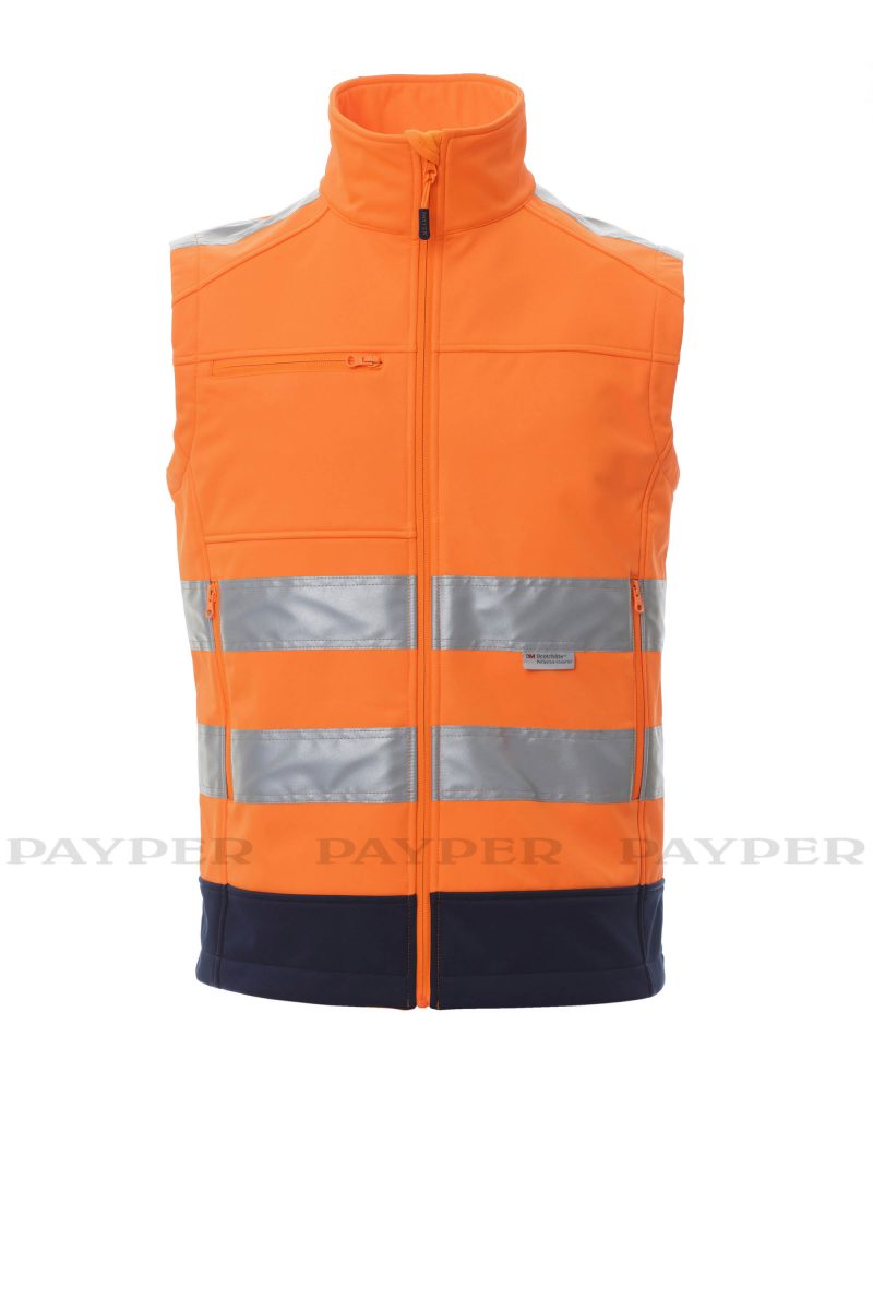 Chaleco de hombre ergonómico, bicolor de alta visibilidad, con bandas de 3M, con cremallera SBS larga con cinta, dos bolsillos laterales con cremallera, un bolsillo en el pecho, soporte para tarjetas extraíble y desmontable.