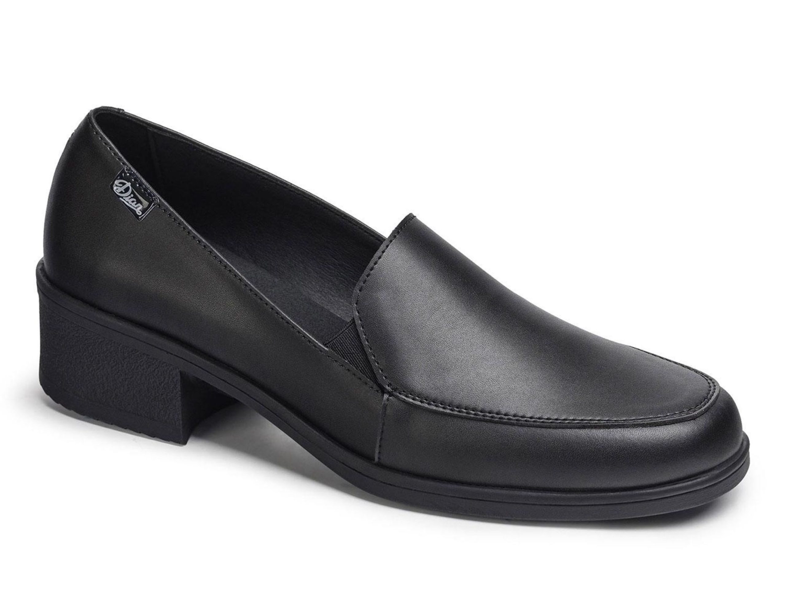 Zapato femenino con cierre de elásticos laterales, de piel micro D’COVER PLUS®, forrado en la pala con tejido técnico D’DRY®. Horma recta de puntera redondeada. Contrafuerte de dureza suficiente para sujetar el calcáneo. Plantilla acolchada de tejido sobre espuma de poliuretano con tratamiento antibacterias y carbón activado. Suela de poliuretano antideslizante.