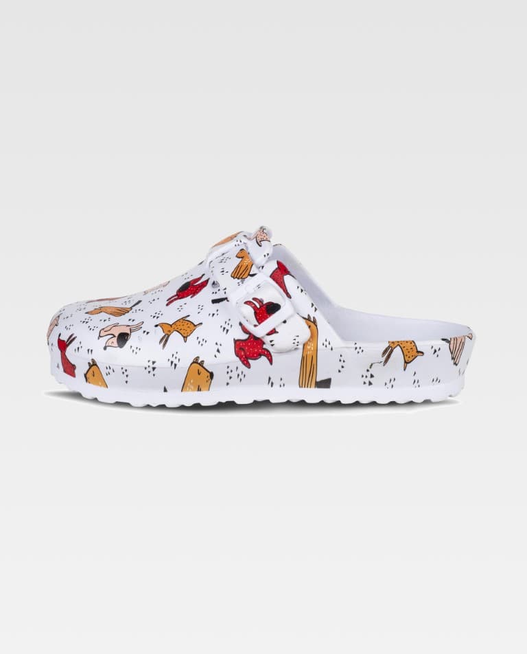 Zueco EVA, con hebilla decorativa. Resaltes en suela. Estampados varios. REF.